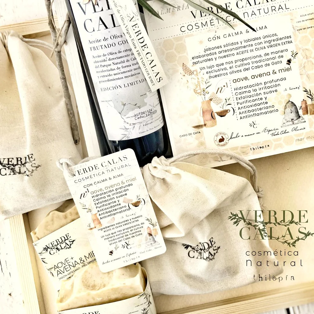 Partiendo del Aceite de Oliva Virgen Extra Verde Calas, y de un afán por realzar el lujo que se esconde también en lo “de toda la vida” surgió la idea de hacer jabones y labiales naturales y artesanales, pero mejorados, utilizando el Virgen Extra de nuestros aceites del Cabo de Gata, que es la mejor materia prima, acompañado de una selección de ingredientes de primera calidad y aromas procedentes únicamente de aceites esenciales. Un mix de “gloria bendita” para nuestra piel y nuestros sentidos. Una gama de Cosméticos AOVE que aspira a más, porque la calidad del AOVE de Almería es excelente.